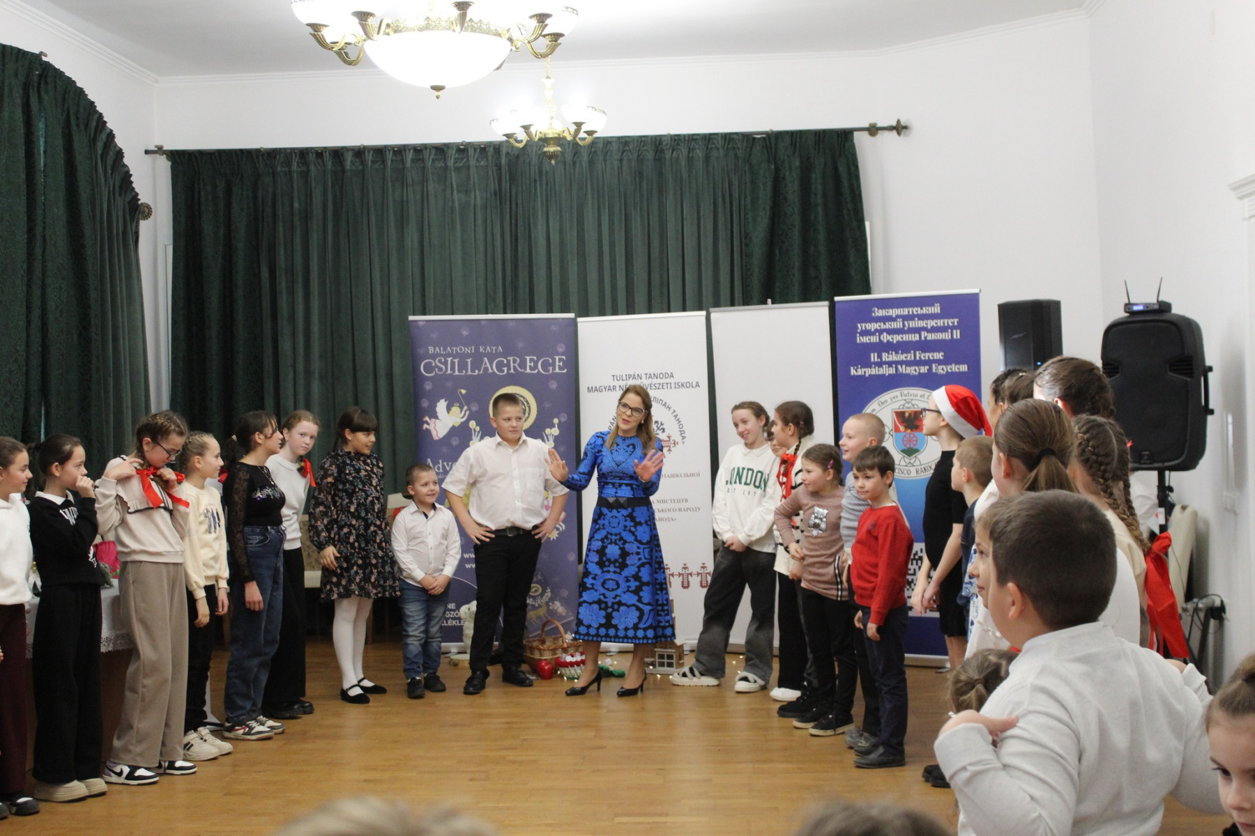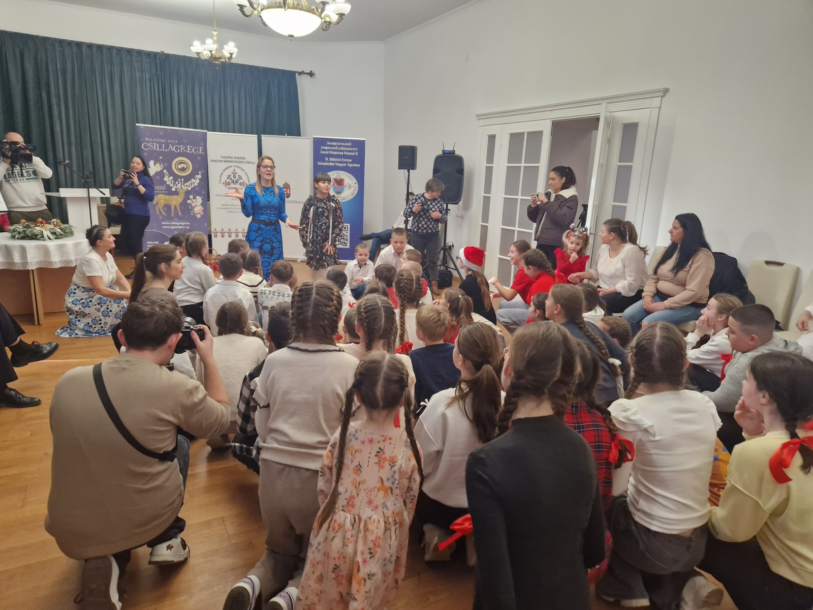 A rendezvény kezdetén a jelenlévőket Kepics Andzselika, a Tulipán Tanoda Magyar Népművészeti Iskola igazgatója köszöntötte. Őt követte Balatoni Katalin, aki a karácsony hangulatával érkezett, és igazi jókedvet varázsolt a kicsik arcára.