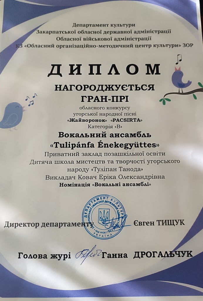 A II. Rákóczi Ferenc Kárpátaljai Magyar Egyetem első egyetemi MA/MSc diplomaátadó ünnepségén lépett fel a Tulipán Tanoda Magyar Népművészeti Iskola Beregszászi Tulipán Énekegyüttese és harmónika szakos növendékünk, Kosztyó Dorka.